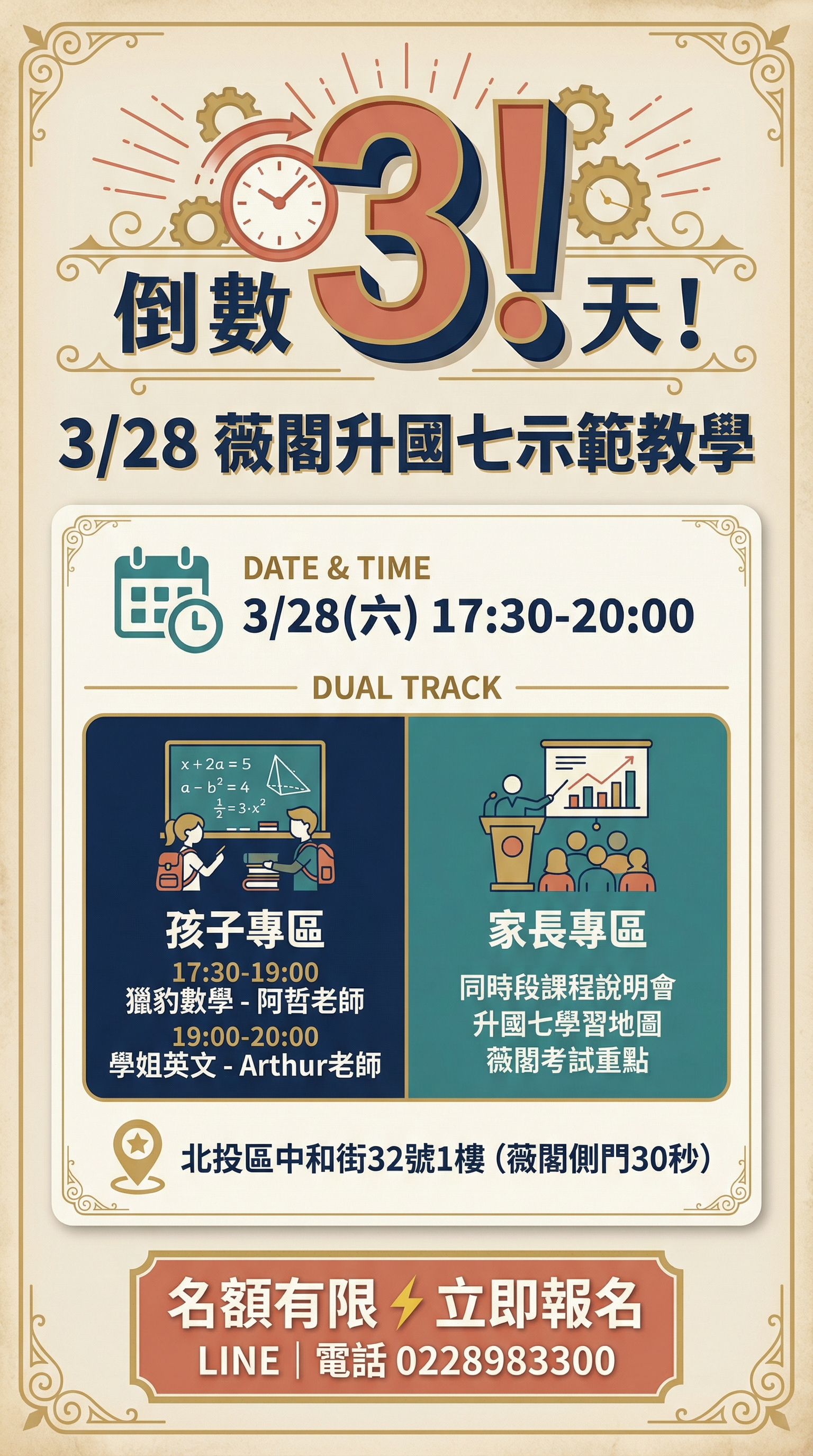 ⏰ 倒數 3 天!3/28 薇閣升國七示範教學
