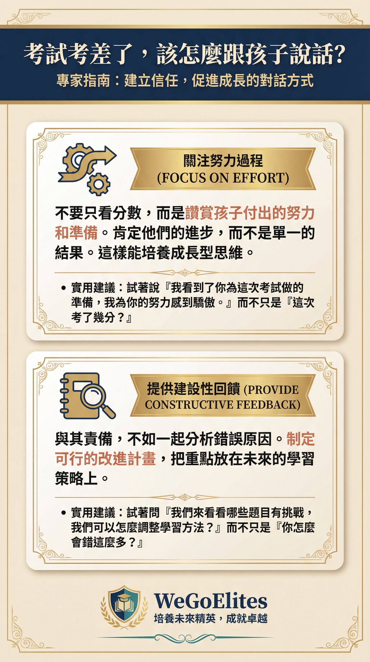 很多家長的第一反應是:「你怎麼考成這樣!」「我不是叫你要認真讀書嗎!」「你看隔壁XXX都考90分!」