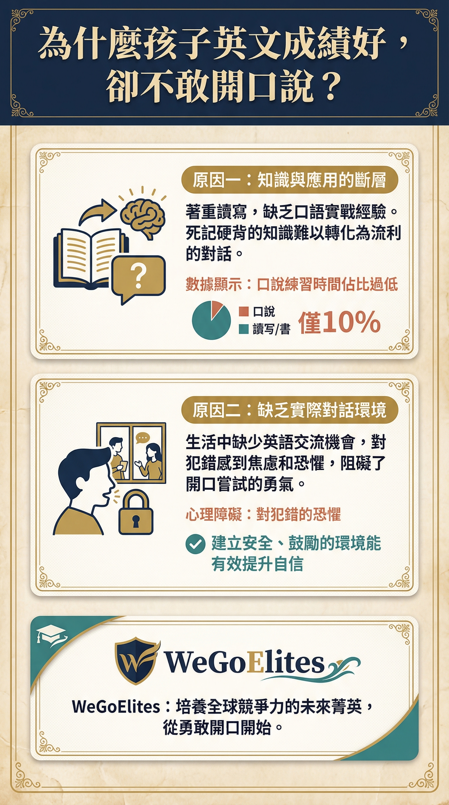 在 WeGoElites,我們用 80% 的時間讓孩子「說」,而不是「背」。