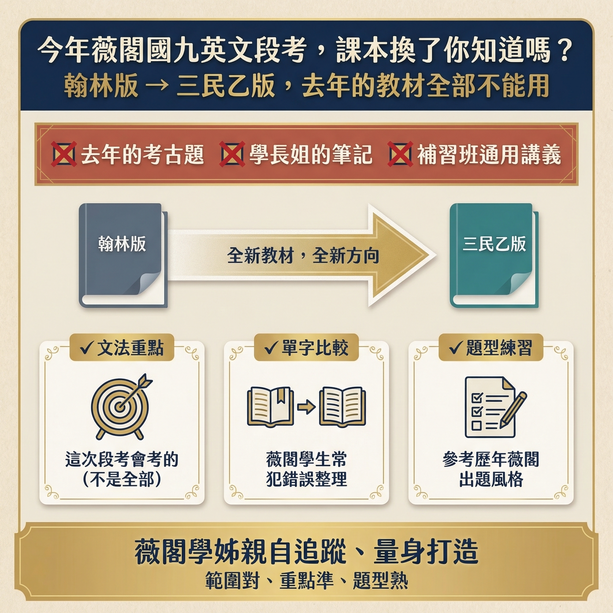 今年薇閣國九英文段考,課本換了你知道嗎?