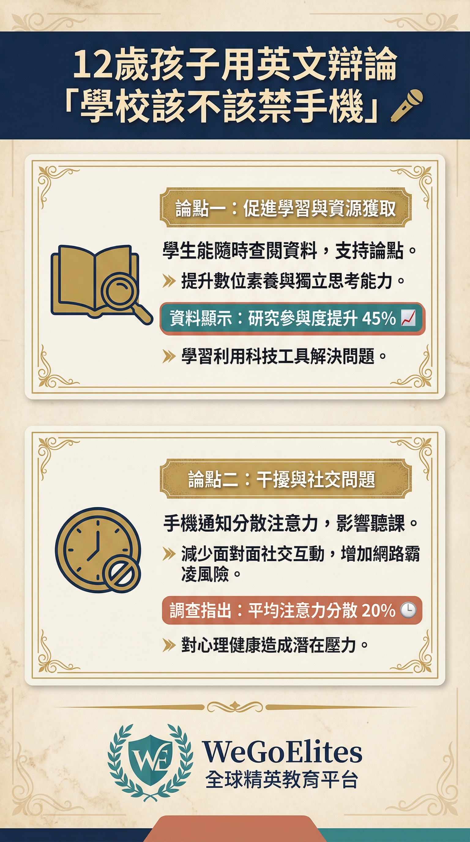 12歲孩子用英文辯論「學校該不該禁手機」🎤