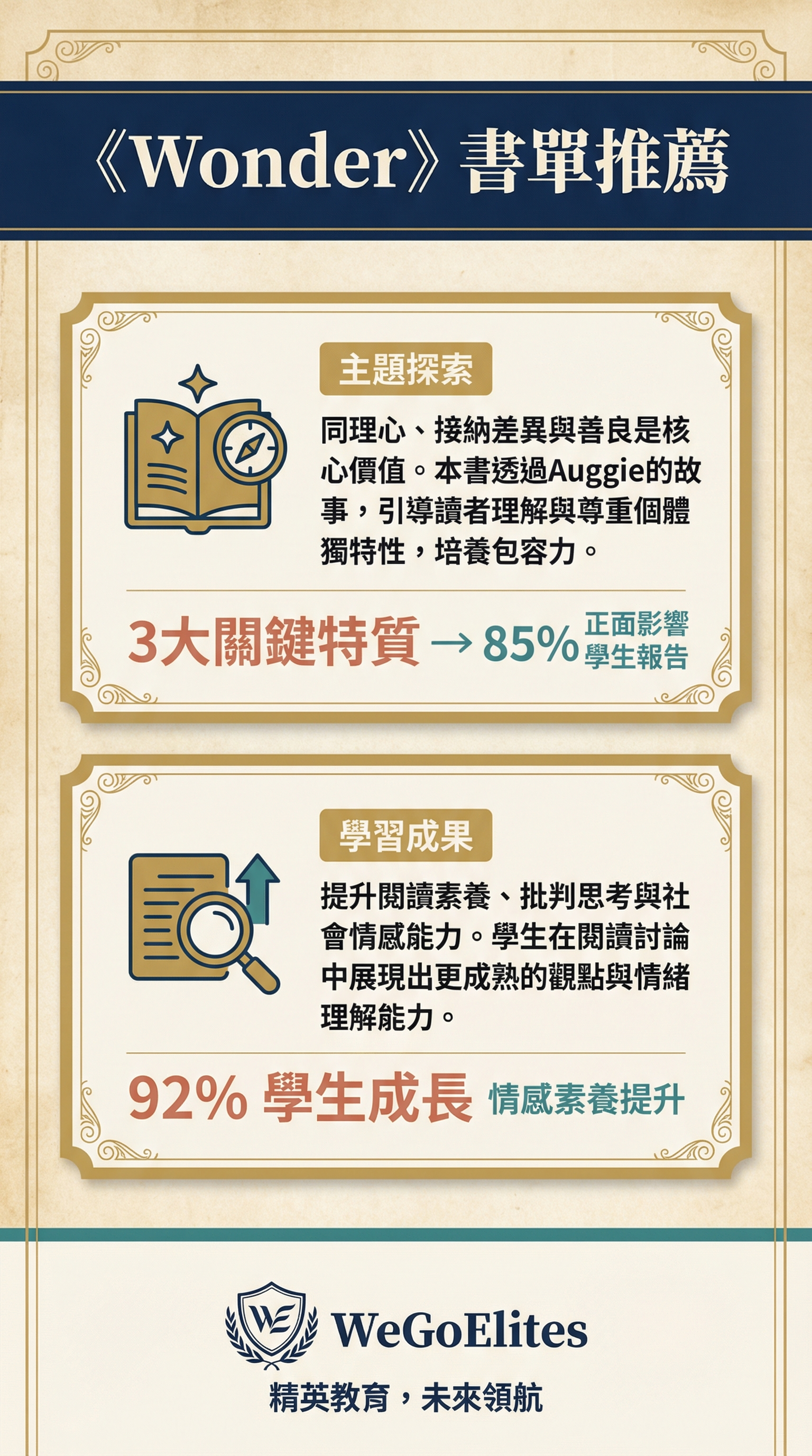 這是一個臉部畸形的十歲男孩 Auggie 第一次上學的故事。這本書用六個不同角色的視角,講同一段校園生活。同一件事,六種真相。這是真正的同理心訓練 — 理解每個人,包括你不認同的人。